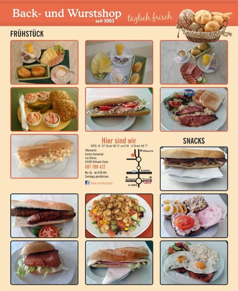 The menu is structured to accommodate a range of light bites and snacks as well as more filling meal choices. It is designed for convenience and ease of selection, making it suitable for visitors seeking either a quick refreshment or a modest meal.
